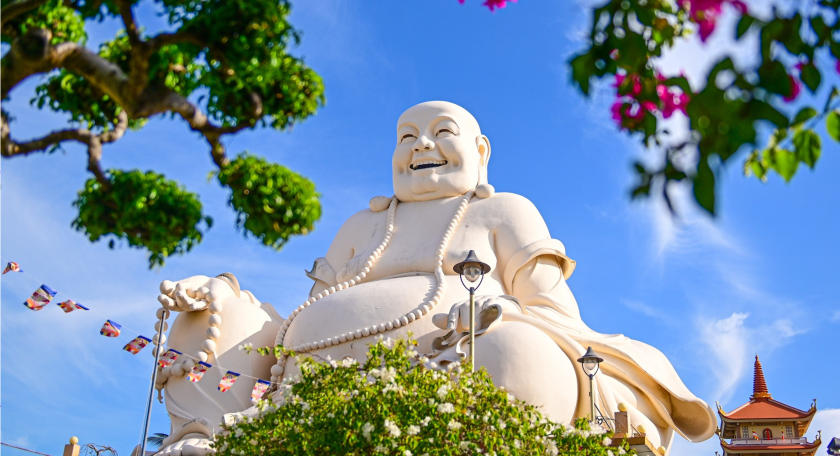 Arrive at Vinh Trang Pagoda, one of the oldest temples in the Mekong Delta, renowned for its harmonious blend of Asian and European architectural styles. The pagoda features: